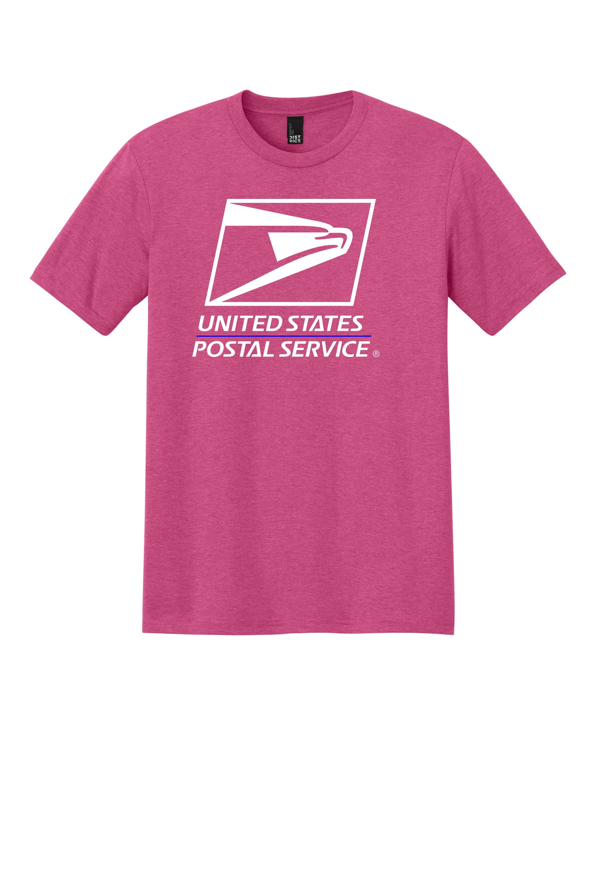 Unisex tri blend short sleeve t shirt with US Postal Service logo on front and 'Rural Carrier' printed on each sleeve.